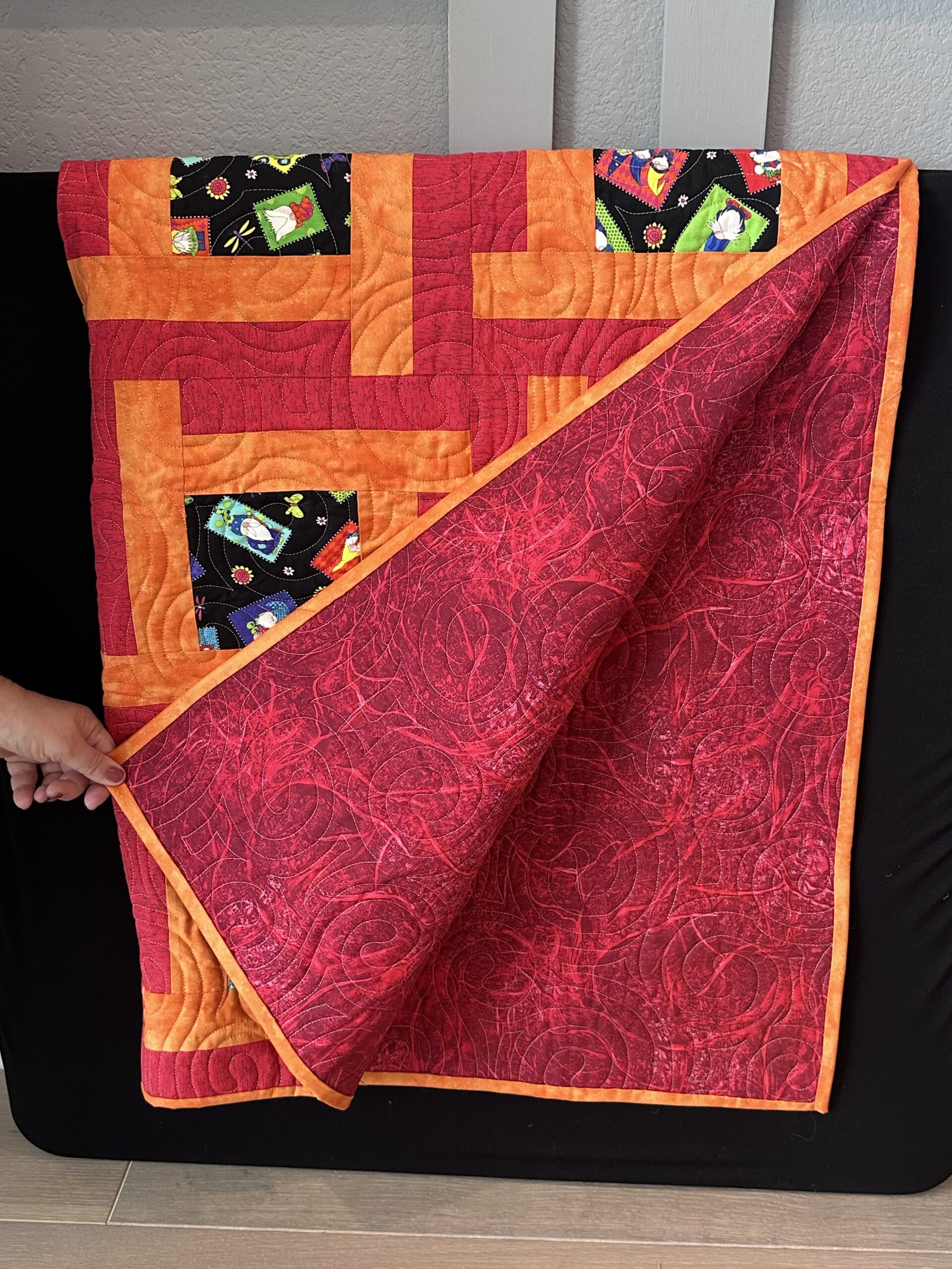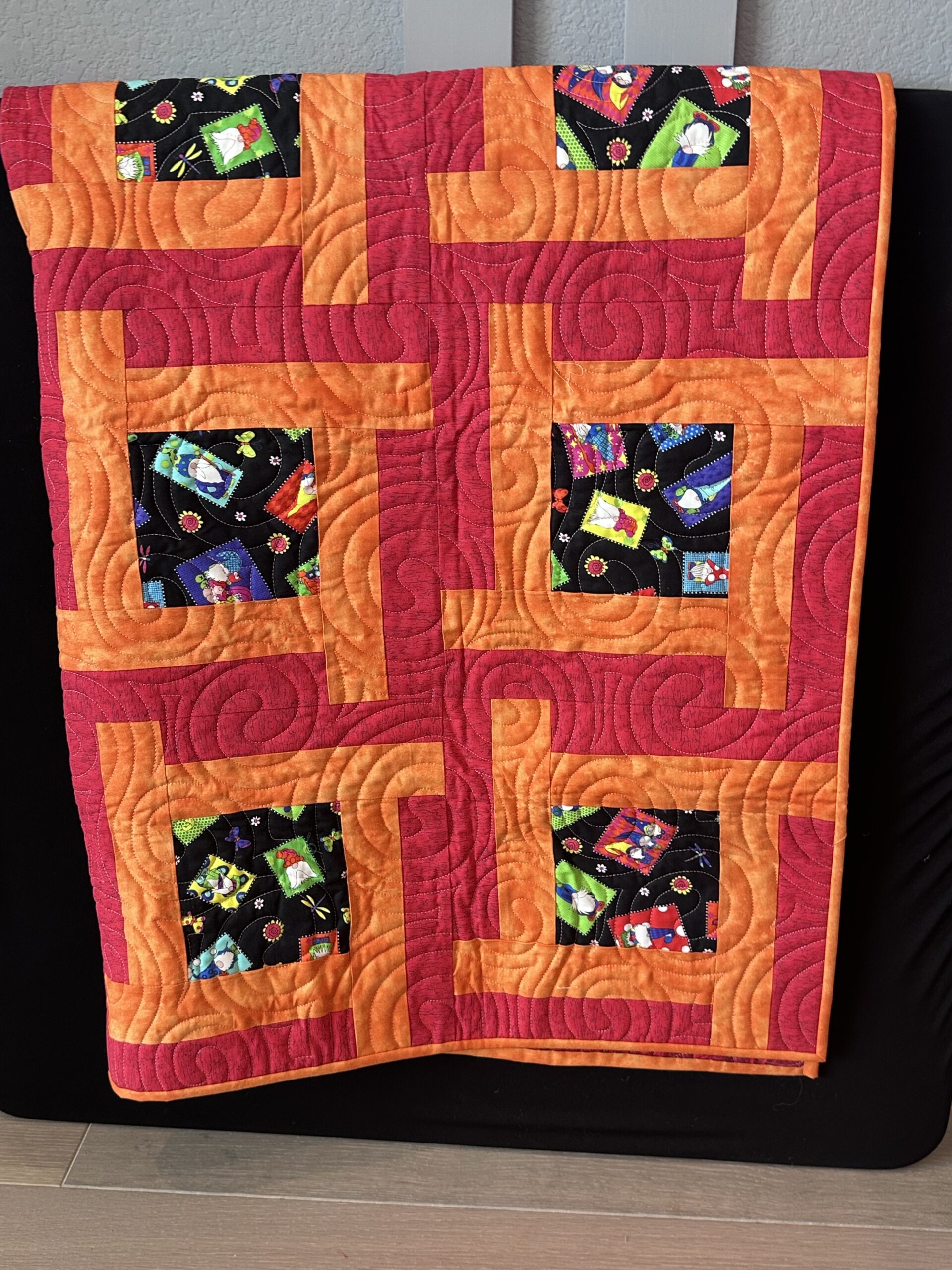 Red and Orange Gnome Quilt approx 55×65